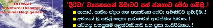 ‘දිත්වා’ සුළි කුණාටුව, පසු විජිත ශ්රී ලංකාවේ ඇති වූ බිහිසුණුම ව්යසනය ලෙස නම් කෙරේ. පොලවට, ජල ධාරාවනට බිලි වූවෝ දහස