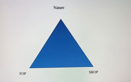 FOP ලෙස දැක්වෙන්නේ නිෂ්පාදන බලවේගයන් (Forces of Production) ය. SROF යනු නිෂ්පාදනයේ සමාජ සම්බන්ධතා (Social Relations of Production) ය. නිෂ්පාදන මාදිළියක් නම් කිරීමේදී මේ බලවේග හා සම්බන්ධතා වී ඇති විදිය (articulation) තීරණාත්මක වේ. සමාජ ප්රතිපත්ති නිර්ණය කිරීමෙහි ලා සටහන යොදාගැන්මේ දී, අප ගමන් ගන්නා ව්යසන තත්ත්වය සලකමින් ත්රිකෝණයේ මුදුන් මුල්ල පුලුල් අරුතකින් ස්වභාව ධර්මය (nature) දක්වා ඇත. සමාජ ප්රතිපත්ති මේ ත්රිකෝණය තුළ ඕනෑම ලක්ෂයකින් දැක්විය හැක.